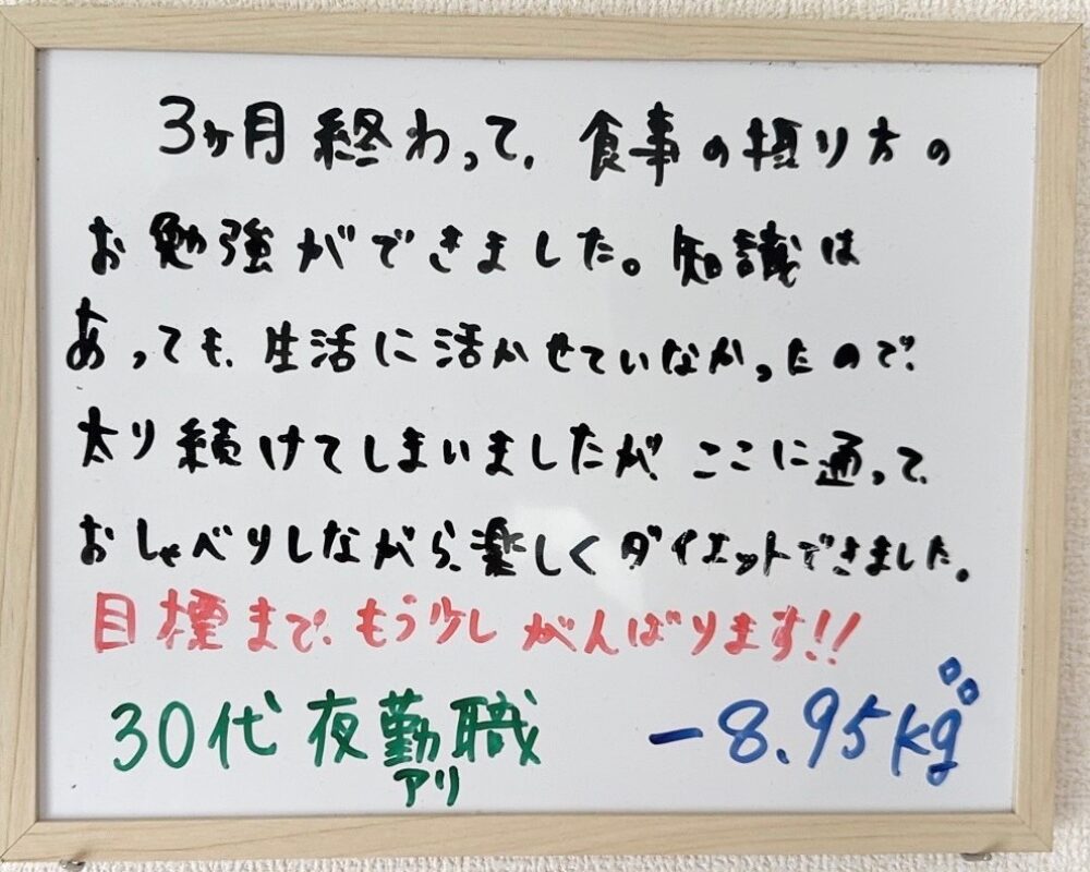 「健康的に痩せたい」「綺麗になってオシャレを楽しみたい」そんな女性の想いに寄り添いながら、一人でも多くの方の願いを叶えるお手伝いがしたいと思っています。